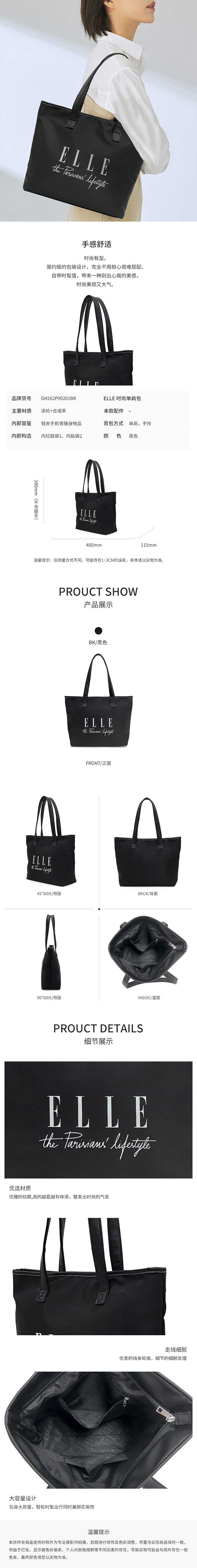ELLE 时尚单肩包GH162P90201BK 黑色