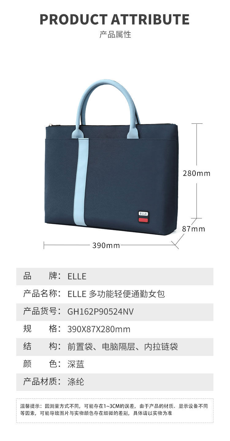 ELLE手提轻便电脑包商务包大容量出差公文包男女士通勤包GH162P90524NV