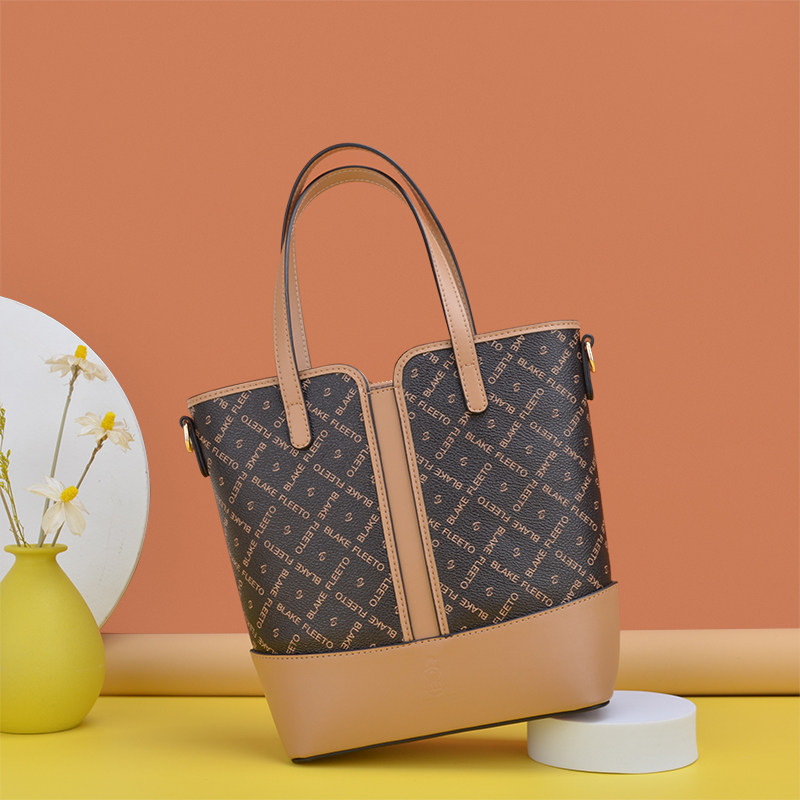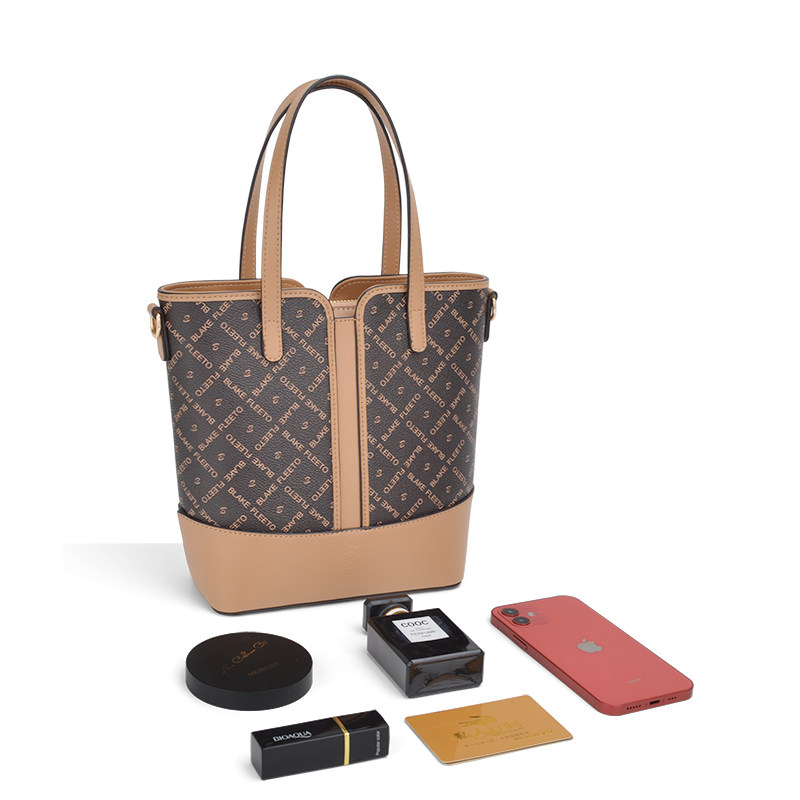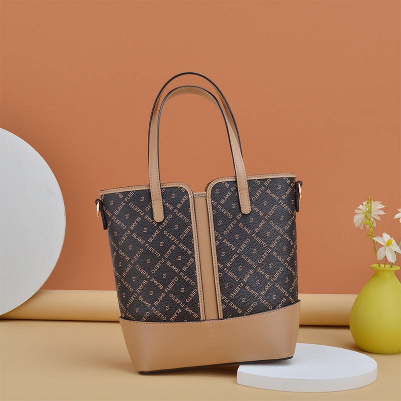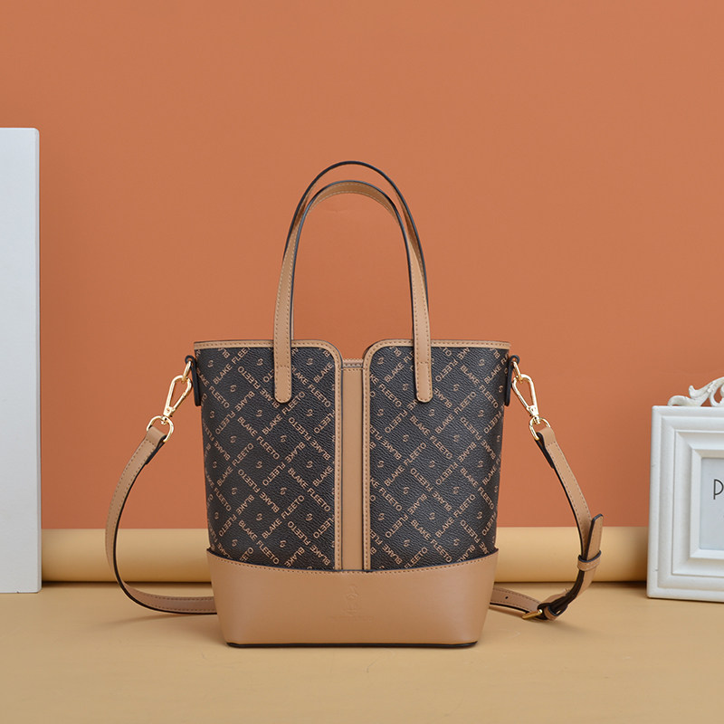 BLAKE FLEETO经典字母印花水桶包老花竖纹款手提包单肩斜挎包女包ZMNNB21204-HK