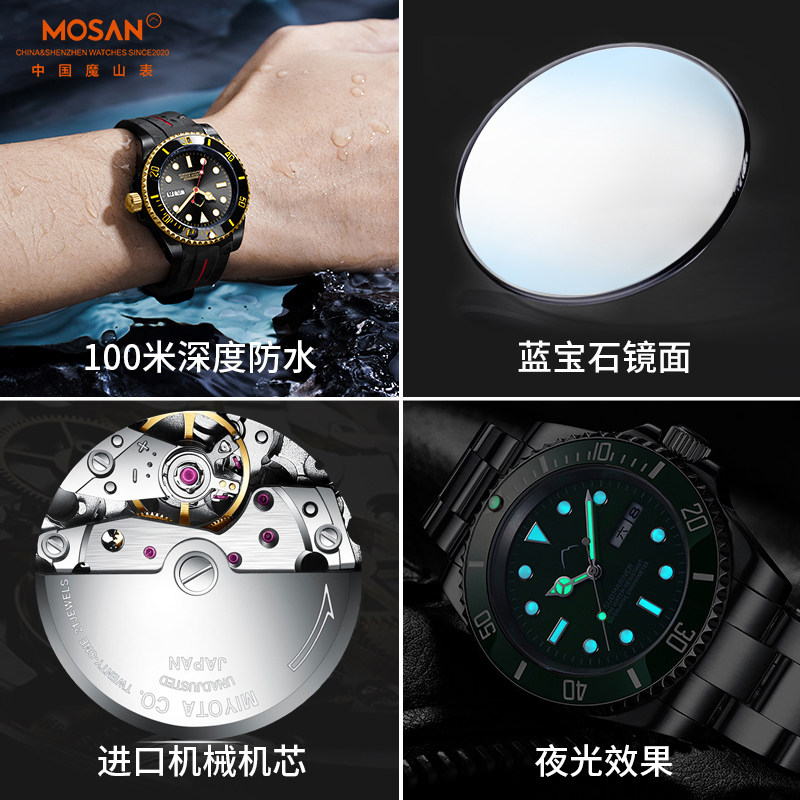 魔山表(MOSAN)正品男士经典水鬼机械手表防水夜光男款手表高配版MS017774