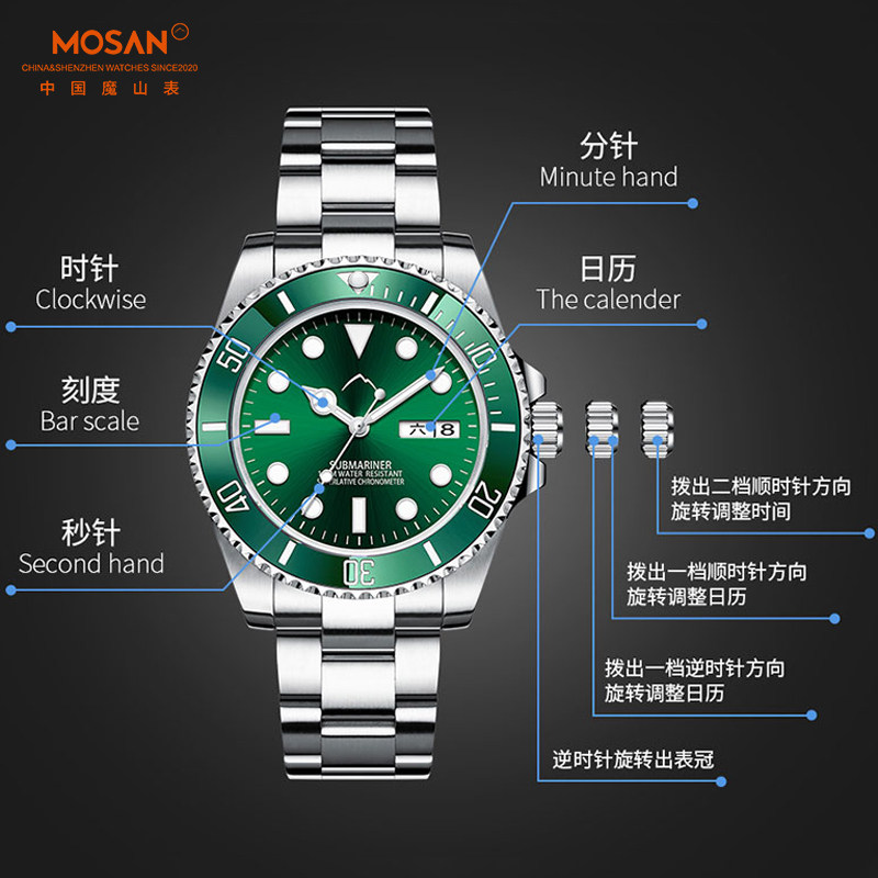魔山表(MOSAN)正品经典水鬼自动机械机芯手表防水夜光男士手表高配版MS017777