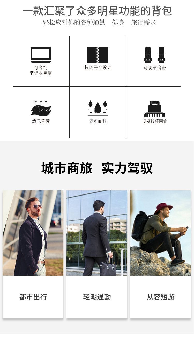 米茄美大容量防水双肩包男士甜圈设计弹道耐用背包M021