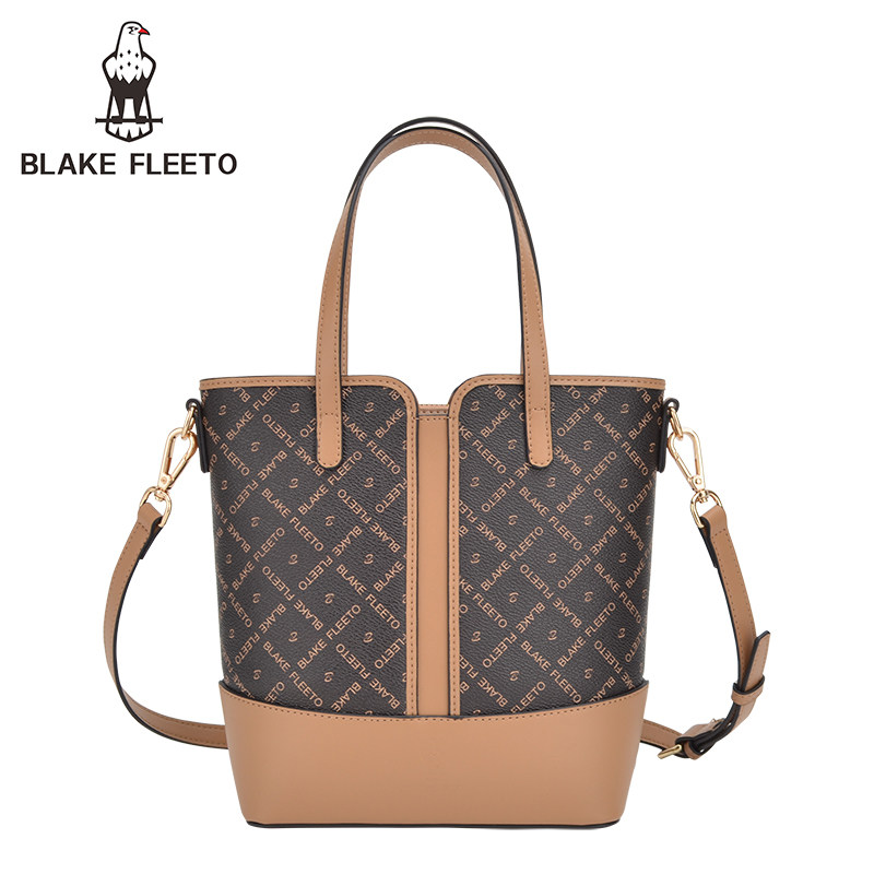BLAKE FLEETO经典字母印花水桶包老花竖纹款手提包单肩斜挎包女包ZMNNB21204-HK